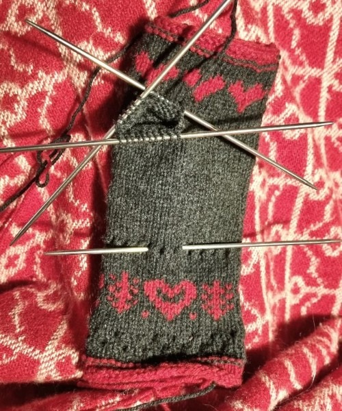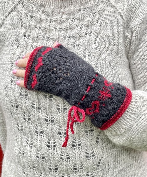Välj själv om du vill sticka halvvanten röd med grafitgrått mönster, eller tvärtom.